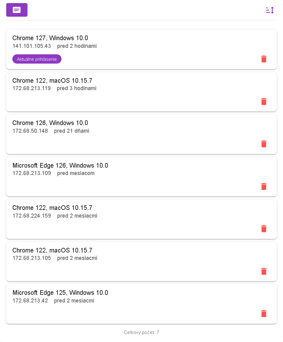 Zobrazuje zoznam prihlásení a doplňujúce informácie, cez ktoré sa daný používateľ prihlásil do systému AUSEMIO.