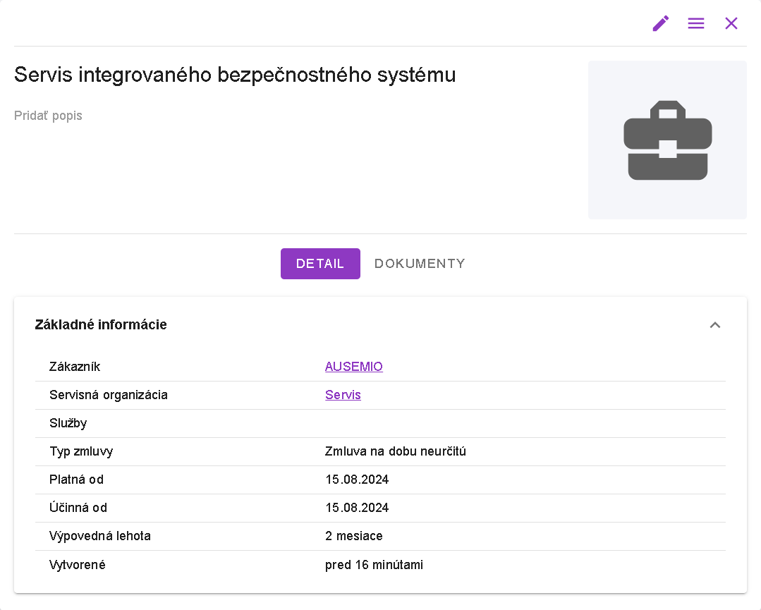 tlačidlo Operácie, sa na pravej strane zobrazí detail zmluvy. - Kliknite na tlačidlo
